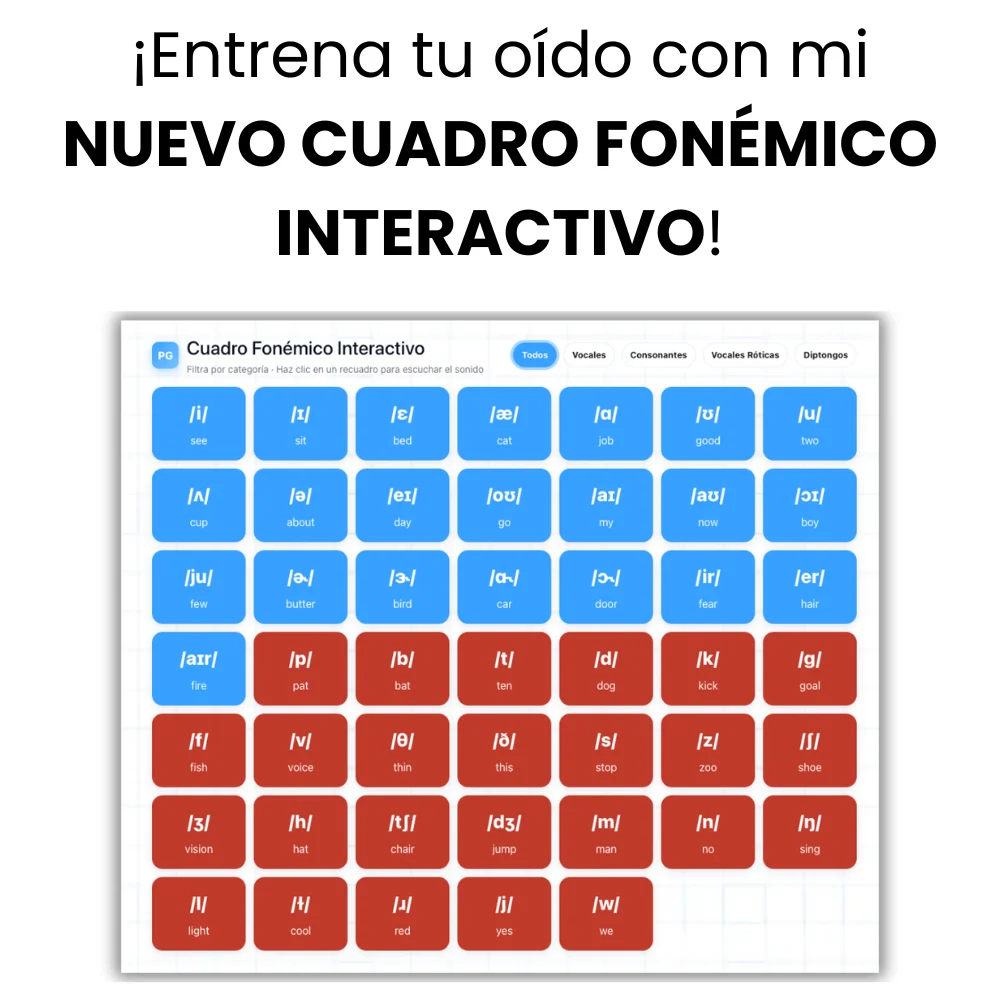 Haz clic en cada sonido, escúchame pronunciarlo con ejemplos reales y empieza a entrenar tu oído para entender y sonar como un nativo 🇺🇸